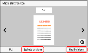 Sakatu [Hasi bidaltzen] eskaneatutako datuak aurreikusi eta gero.