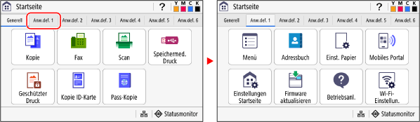 Wenn Sie auf eine Registerkarte tippen, wird der Bildschirm für die ausgewählte Registerkarte angezeigt.