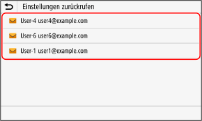 Drücken Sie auf der Registerkarte [Empfänger defin.] des Scan- oder Faxbildschirms auf [Einstellungen zurückrufen].