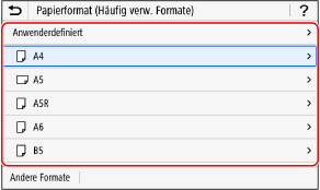 Drücken Sie [Andere Formate], und wählen Sie das Papierformat aus der angezeigten Liste.