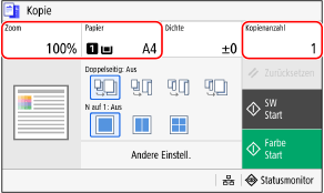 Legen Sie den Zoom, das Papier und die Anzahl der Kopien fest.