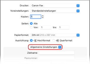 Wählen Sie im Popup-Menü der Druckoptionen die Option [Allgemeine Einstellungen].