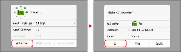 Sie können den Versand eines Faxes abbrechen, indem Sie den Anweisungen auf dem Bildschirm folgen.