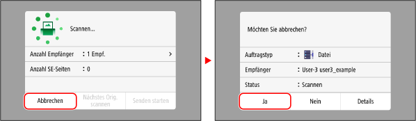 Befolgen Sie die Anweisungen auf dem Bildschirm, um einen Scanvorgang abzubrechen.