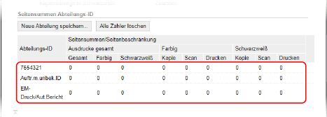 Sehen Sie sich unter [Seitensummen Abteilungs-ID] die Nutzung an.