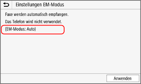Nach Anzeige der Meldung [Einstellungen konfiguriert.] wird der Bildschirm [Einstellungen EM-Modus] angezeigt.