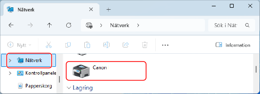 I [Nätverk] ska du välja utskriftsservern för att visa den delade skrivaren.