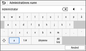 * Det går att ange tecken på kontrollpanelen även när ett USB-tangentbord är anslutet till enheten.