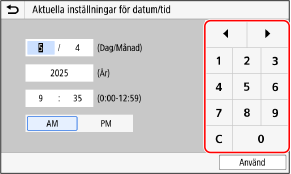 Sifferknapparna visas när inställningen endast kan anges med siffror.