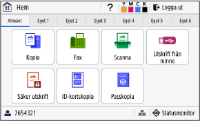 ![]() | Snabbvalsknapp (kopiera) Hämtar de kopieringsinställningar som har registrerats som favoritinställningar. Namnet på knappen beror på inställningen. Lägga till snabbvalsknappar |