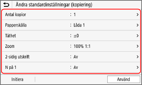Återställa standardinställningar till fabriksinställningarTryck på [Initiera] [Ja] på skärmen i steg 4. |