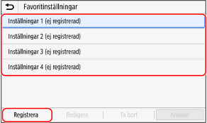 Registrera favoritinställningar
