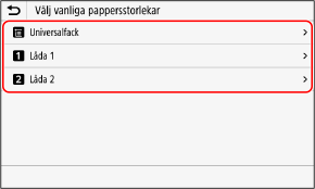 Skärmen [Välj vanliga pappersstorlekar] visas.