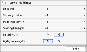 När du trycker på volymknappen () på kontrollpanelen, eller volymtangenten () [Andra volyminst.], visas skärmen [Volyminställningar].