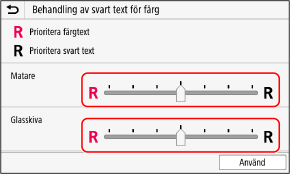 Gör justeringen med prioritet på att återge antingen färgtext eller svart text i [Matare] eller [Glasskiva].
