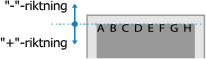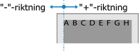 Ange justeringsriktningen med + och - och ange justeringsbredden i steg om 0,1 mm.