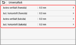 Du kan ange justeringsriktning och bredd för varje papperskälla och utskriftssida (fram- och baksidan).