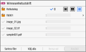 Skärmen för att välja filer på USB-minnet
