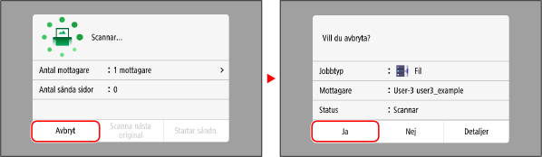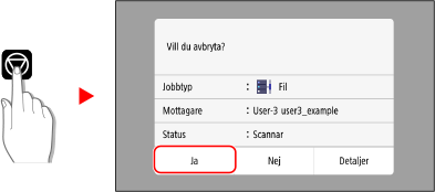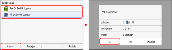 Om jobblistan visas väljer du jobbet som ska avbrytas och trycker på [Avbryt]