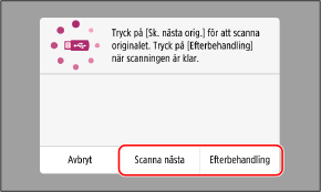 Om du vill fortsätta att skanna placerar du originalen på glasskivan och trycker på [Scanna nästa].