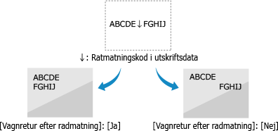 [PCL]Du kan ange om en vagnretur (CR) ska läggas till när enheten tar emot en radbrytning (LF). Om du anger [Ja] flyttas utskriftspositionen till en ny rad när enheten tar emot en LF-kod. Om du anger [Nej] flyttas utskriftspositionen till nästa rad, precis nedanför den mottagna LF-koden. |