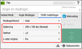 Angiv destinationen på fanen [Indtast Modt.], fanen [Angiv Modtager] eller [Adressebog].