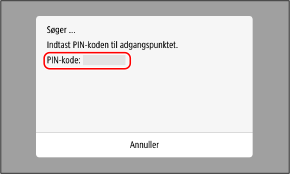 Når denne skærm vises, skal du registrere WPS PIN-koden for den trådløse LAN-router inden for 10 minutter.