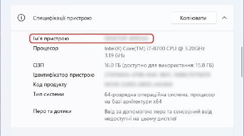 Ім’я комп’ютера відображається в розділі [Ім'я пристрою].
