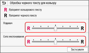 У розділі [Подавач] або [Скло експонування] виконайте налаштування, надавши пріоритет відтворенню кольорового чи чорного тексту.