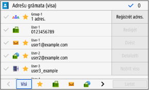 Lai rādītu visus adrešu grāmatā reģistrētos adresātus, atlasiet [Visi].