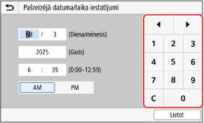Ciparu taustiņi tiek rādīti vienumiem, kuros ievadīt var tikai ciparus.
