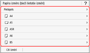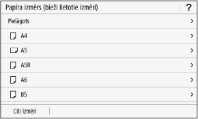 Varat mainīt ekrānā parādīto papīra formātu 1. darbības laikā. Neizmantoto papīra formātu paslēpšana