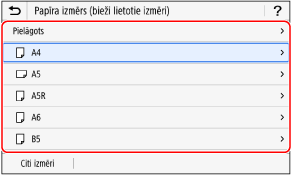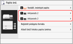 Varat mainīt ekrānā parādīto papīra formātu 3. darbības laikā. Neizmantoto papīra formātu paslēpšana