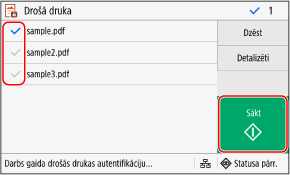 Atzīmējiet drukājamo drošo datu izvēles rūtiņu un piespiediet [Sākt].
