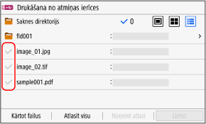 * Jūs nevarat vienlaikus atlasīt gan PDF failus, gan attēlu failus (JPEG vai TIFF faili).