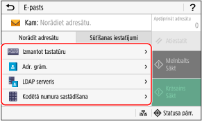 Ja sūtīšanas laikā adresāts ir ierobežots funkcijas Autentifikācijas iestatījumi sūtīšanai dēļ, citu adresātu nevar norādīt. Lai saņemtu detalizētu informāciju, sazinieties ar administratoru.