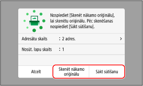 Kad visi dokumenti ir noskenēti, nospiediet [Sākt sūtīšanu] vai [Priekšsk. un sūt.].