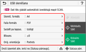 Ja parādās atmiņas datu nesēja darbības panelis, piespiediet [USB skenēšana], un pārejiet pie 5. darbības.