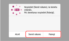 Lai turpinātu skenēt oriģinālus, novietojiet tos uz planšetes stikla un nospiediet [Skenēt nākamo].