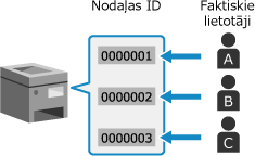 Piešķiriet lietotājiem un grupām nodaļas identifikatorus (ID) atbilstoši lietošanas videi un nolūkam. Turklāt PIN iestatīšana nodaļas identifikatoram (ID) var nepieļaut nesankcionētu piekļuvi un nodrošināt stingrāku pārvaldību.