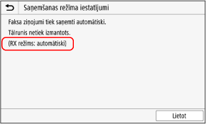 Pēc tam, kad ir redzams paziņojums [Konfigurētie iestatījumi.], tiek parādīts ekrāns [Saņemšanas režīma iestatījumi].