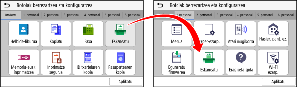 Erregistratu maiz erabiltzen dituzun eskaneatze-, fax- edo kopia-ezarpenak eta gehitu lasterbide-botoiak.