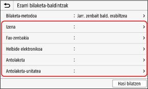 Erabiltzailearen informazioa LDAP zerbitzari batek kudeatzen duenean, informazio hori kontrol-paneleko eskaneatze- edo fax-pantailaren bidez bilatu eta helmuga bat zehatz dezakezu.