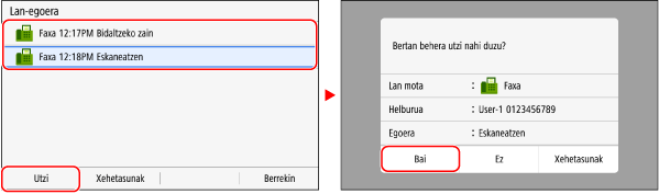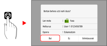 Lanen zerrendaren pantaila bat bistaratzen bada, hautatu bertan behera utziko duzun lana eta sakatu [Utzi]