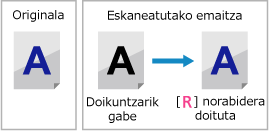 * Original mota [Inprimatutako irudia] edo [Argazkia] ez den aukera batean ezarrita badago eskaneatzeko edo kopiatzeko, doikuntza hau aplikatzen da.