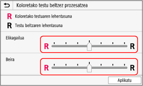 Originalak kolorez eskaneatzean, doikuntzak egin ditzakezu ia beltza den testua (kolorezko testua) erreproduzitzeari edo testu beltza errazago ikusteko aukerari lehentasuna emanez.