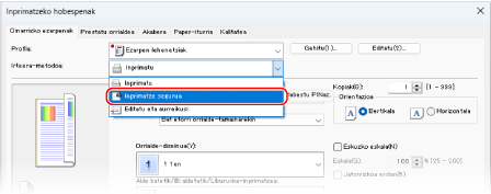 Inprimatze seguruaren bidez, PIN bat ezar diezaiokezu ordenagailuko dokumentu bati, eta gero dokumentu hori makinara inprimatzeko bidali. PINa makinean sartu eta gero burutuko da inprimatzea.