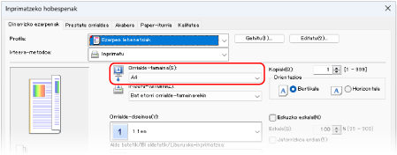 Inprimatzeko aukeren [Paper Size] aukeran, hautatu dokumentuaren paper-tamaina.