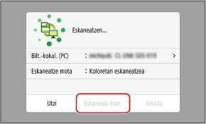 Originalak eskaneatzen jarraitzeko, koka itzazu beiran eta sakatu [Eskaneatu hurr.].