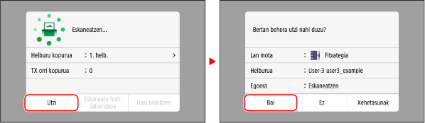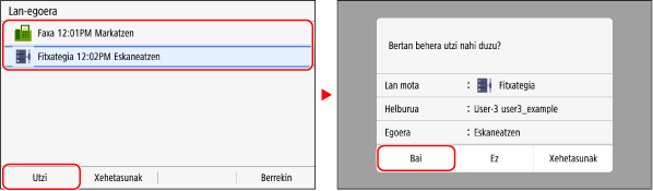 Lanen zerrendaren pantaila bistaratzen bada, hautatu bertan behera utzi nahi duzun lana eta sakatu [Utzi]